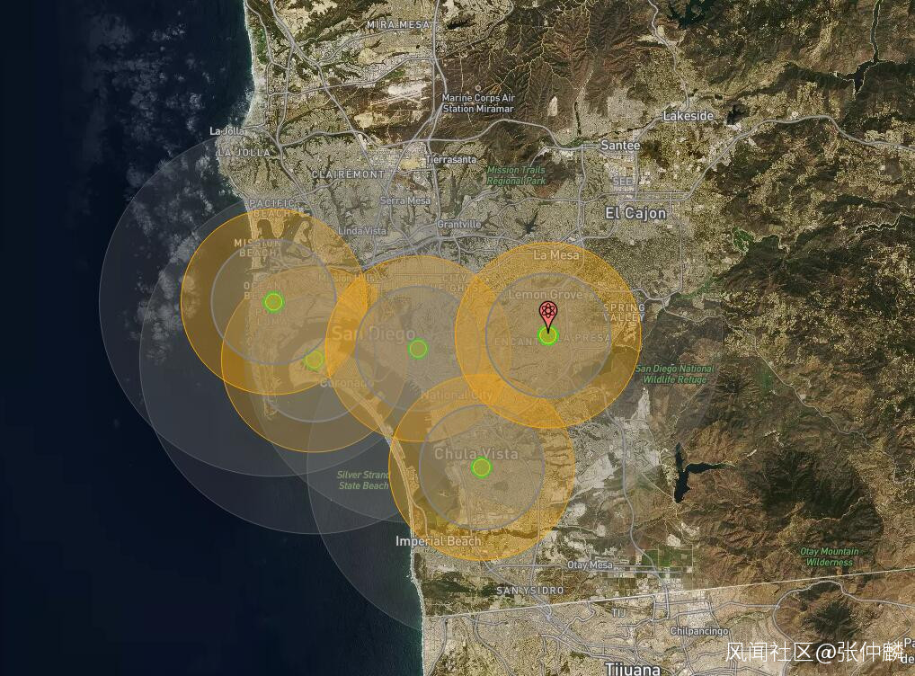 聖迭戈更是少不了,美國海軍在聖迭戈的基地怎麼也得賞一發彈頭對不?