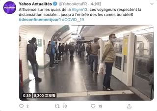 昂熱的一家商場外,大家保持距離排隊等待👇