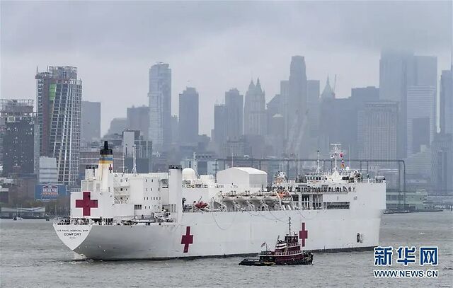 ▲4月30日,在美國紐約,美國海軍醫院船“舒適”號駛離紐約曼哈頓。新華社發(菲舍婕 攝)