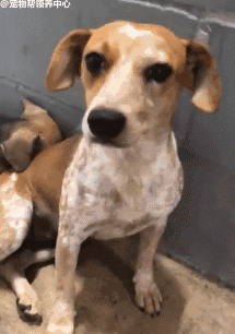 她很不捨但乖乖的讓人帶走了狗寶寶,