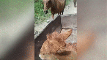 “喘急的洪水中,狗媽媽叼着自己的寶寶過河,