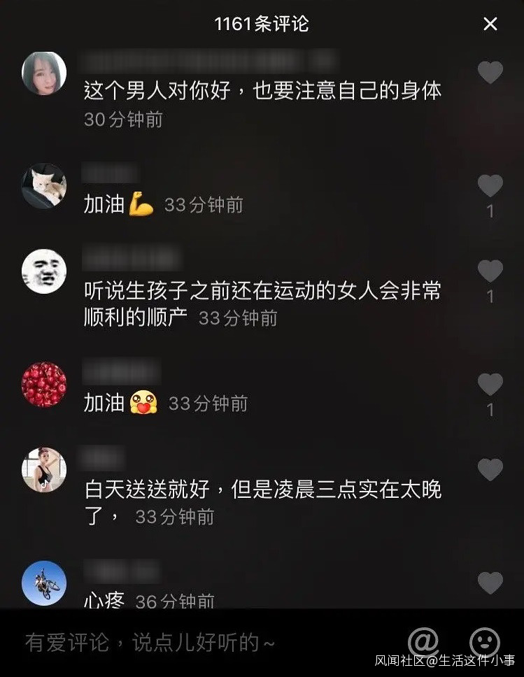 評論區裏,有網友表示心疼,也有網友囑咐她注意安全、保重身體……總體上,網友們都在為這位準媽媽加油打氣。