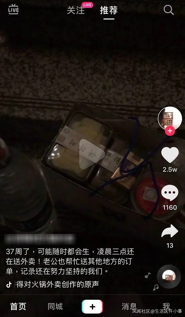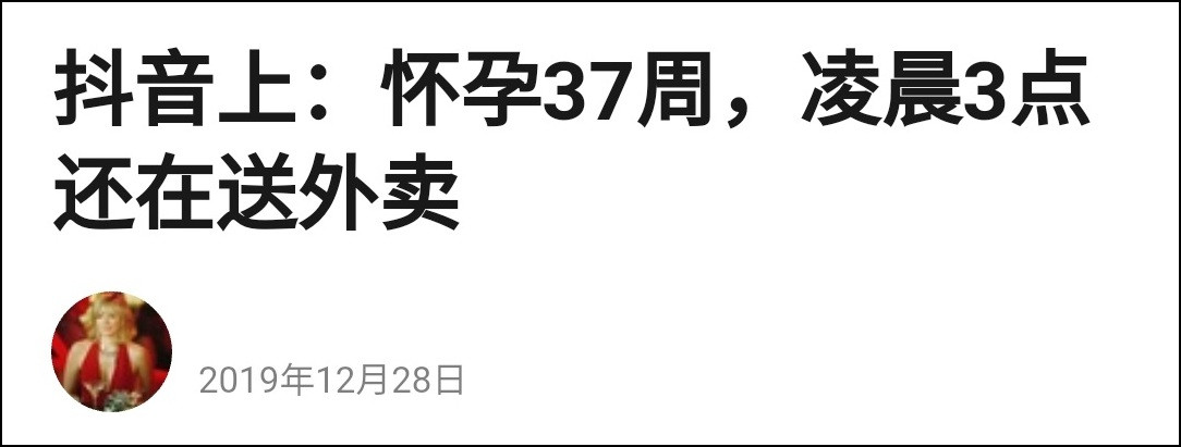 但據信應該是起於去年12月抖音平台上的一段短視頻。視頻的大致內容是一位婦女懷孕37周,但是在凌晨三點鐘前後仍然送外賣。