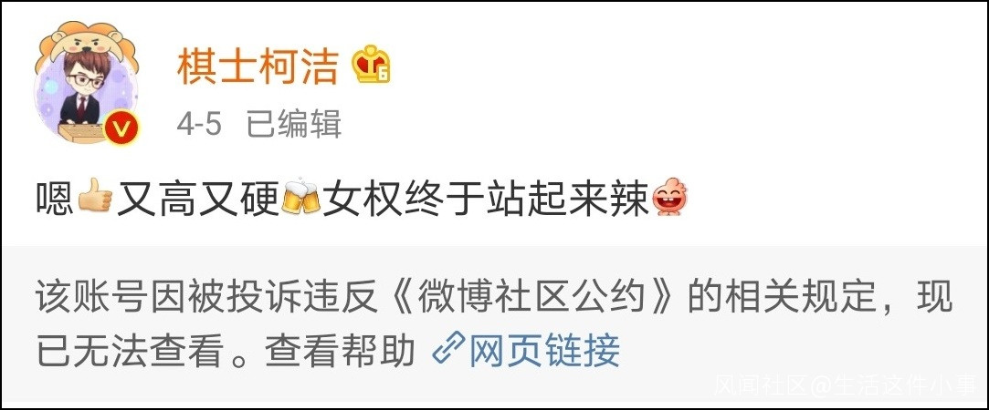 最後面,微博站方認定網友@寫論文使我快樂_今天寫論文了嗎 的發言違反了《微博社區公約》中的相關規定,因此將其賬號予以封禁。