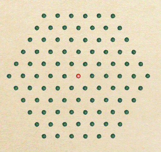 大家看下面的圖:原本U235非常的分散,我們用一種方法把它們聚集到一起,非常的緊密,這樣中子就更加容易的轟擊到它們。