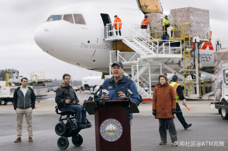 幾天後,蘇努努和卡門看着一架波音MD-11飛機在該州曼徹斯特(Manchester)的機場着陸,裏面裝滿了口罩和其他防護用品。