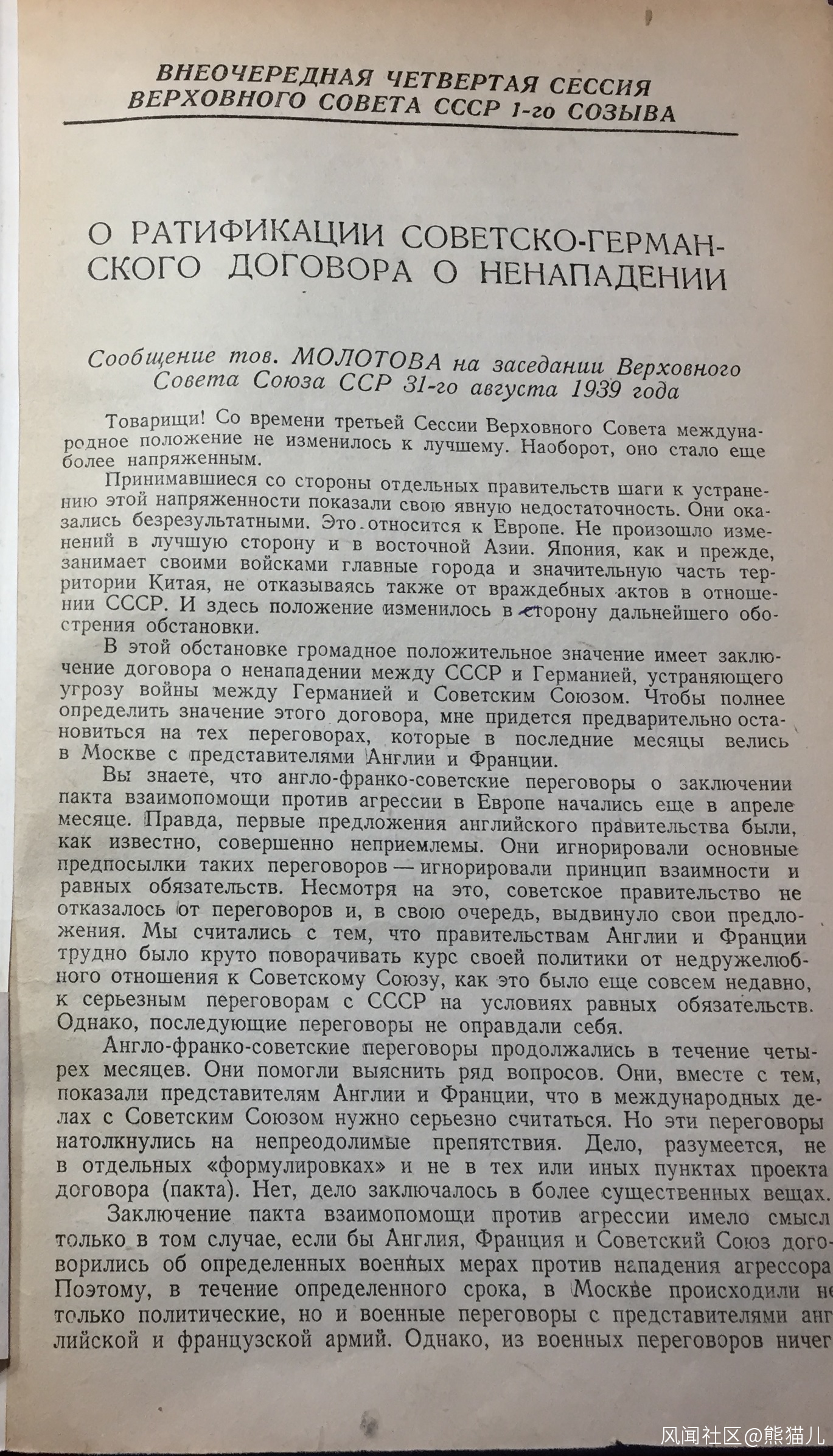蘇聯外交人民委員莫洛托夫在1939年8月31日和9月1日評論《蘇德互不侵犯條約》簽訂及出兵西部白俄羅斯和烏克蘭的政治背景的公開文件,明確揭示了英、法、美當局的政治戰爭陰謀