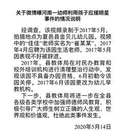隨後,夏邑縣教體局發來公開回應:關於微博曝河南一幼師利用孩子應援明星事件的情況説明: