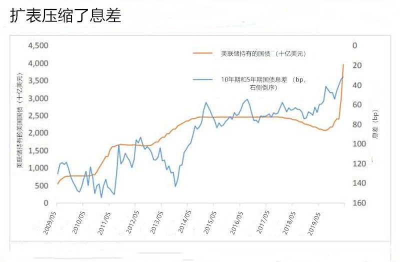這給美聯儲帶來了麻煩,即便存在極端的債券融資需求,如此大規模的擴表會帶來結構性供需失衡,並且久而久之會壓縮期限溢價。