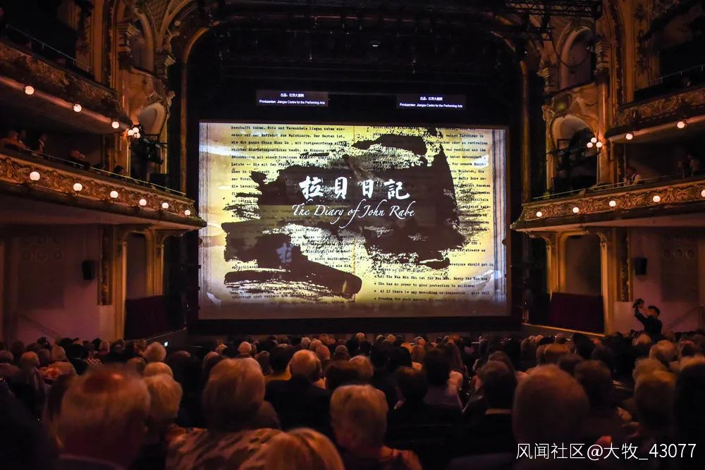 2019年7月9日,在奧地利維也納,人們觀看歌劇《拉貝日記》。該歌劇講述了拉貝等國際友人在二戰中挽救中國民眾生命的故事。新華社記者 郭晨 攝