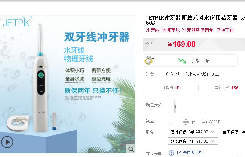 美國的Jetpik長吸管衝牙器,是賣到169的。