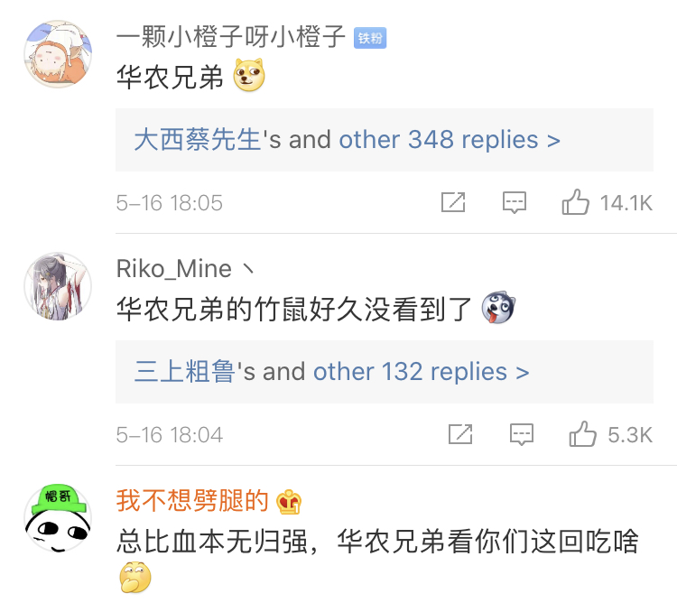 消息一出,在相關報道的評論區,網友開始清一色的cue因養殖和烹飪竹鼠而出名的視頻博主“華農兄弟”……