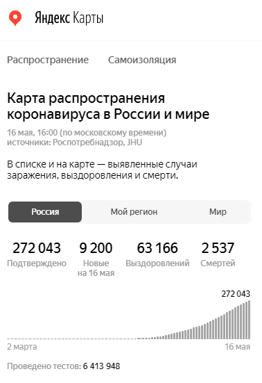 指揮部補充稱,俄羅斯85個聯邦主體累計新冠病毒感染病例272043例(增長3.5%)。消息顯示:“過去24小時,119人死亡,累計死亡2537人。”消息中稱:“過去24小時,治癒4940人,累計出院63166人。”