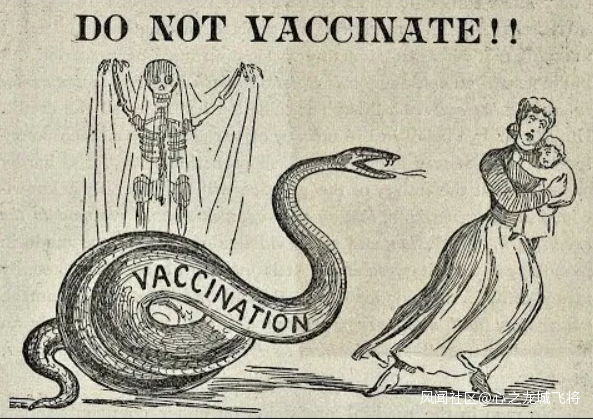 一張歷史悠久的反疫苗漫畫,疫苗被描繪成被操縱的毒蛇,圖源:網絡