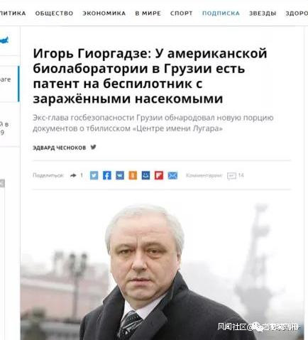 △格魯吉亞國家安全局前任局長吉奧爾加澤稱美國生物實驗室在格開展人體試驗