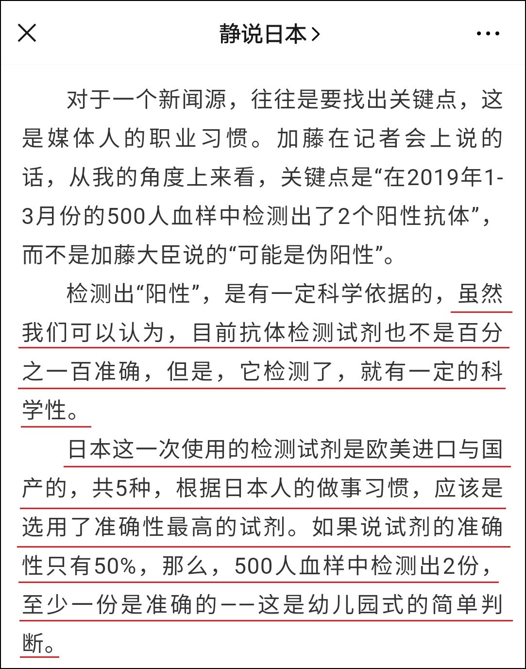 然後還説,“根據日本人的做事習慣,應該是選用了準確性最高的試劑”,這暗戳戳地還是在吹捧日本的國民性啊。