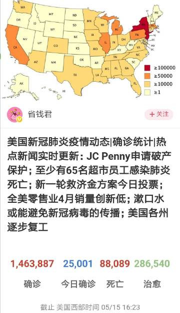 累計測試1100萬次,單日37萬次。死亡1500人(1500,800,1000,1600,1700,1800),CDC預計月底死亡達到10萬人。全球死亡4900人。