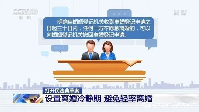 最高人民法院民一庭法官王丹介紹,離婚冷靜期在司法實踐中已經進行過探索,取得了不錯的效果。王丹表示,我們在審判實踐中發現,目前離婚中有一部分是衝動型離婚。如果説法院一判了之的話,可能不只是雙方解除婚姻關係,對於子女的撫養,對於老人的贍養可能都會存在很大的影響。為減少輕率離婚、衝動離婚,維護家庭穩定,民法典草案婚姻家庭編此次擬將“離婚冷靜期”引入。