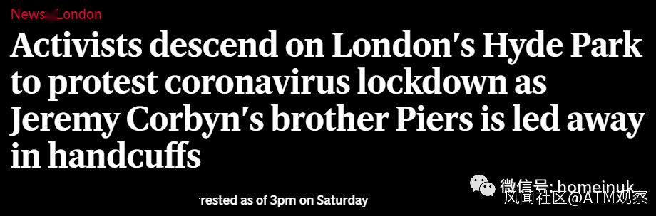 標準晚報:活動家到達海德公園抗議新冠封城,前工黨黨魁Jeremy Corbyn的兄弟Piers被捕