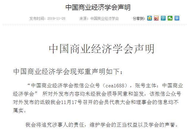 同日,學會官網聲明稱,公眾號內容“均未經我會領導同意和簽發”。