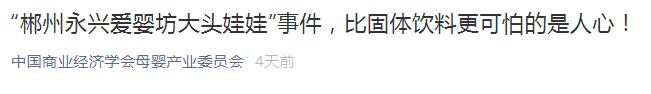 事件曝出後,有一個叫“中國商業經濟學會母嬰產業委員會”(以下簡稱母嬰產業委員會)的組織,寫了一篇題為《“郴州永興愛嬰坊大頭娃娃”事件,比固體飲料更可怕的是人心!》的文章。