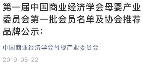 2019年4月27日,中國商業經濟學會母嬰產業委員會在北京舉行成立大會慶典。