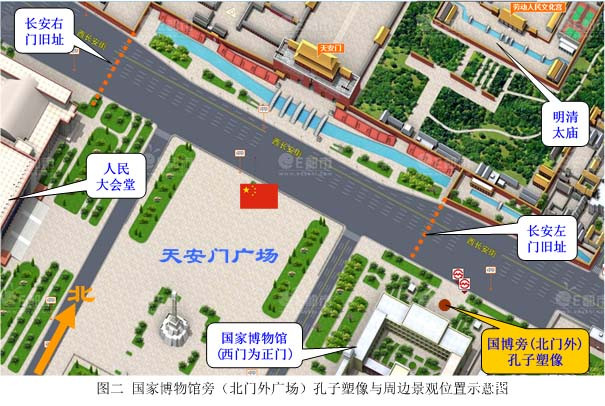 二、國博北門外廣場孔子塑像與天安門及周邊的關係