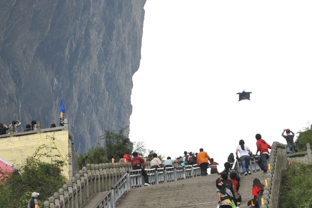 2011年9月24日,傑布·克里斯成功挑戰人類飛行極限,以220公里/時的飛行速度,穿越世界上海拔最高的天然穿山溶洞——張家界天門洞。由此讓這一運動進入國內大眾的視野,天門洞也成了翼裝飛行者挑戰極限的不二選擇。