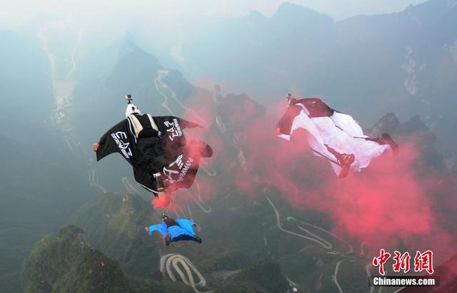 截至目前,天門山已經舉辦了八屆世界翼裝飛行錦標賽。中國的職業翼裝飛行員張樹鵬接受採訪時表示,他已在天門山飛了超過一千次。“可能每一箇中國翼裝飛行員都有飛天門山的夢想。”秦峯説。但是,這裏的意外事故也不止一次的發生。