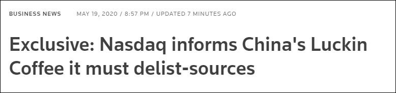 據路透社報道,有消息人士週二透露,納斯達克交易所通知瑞幸必須摘牌。