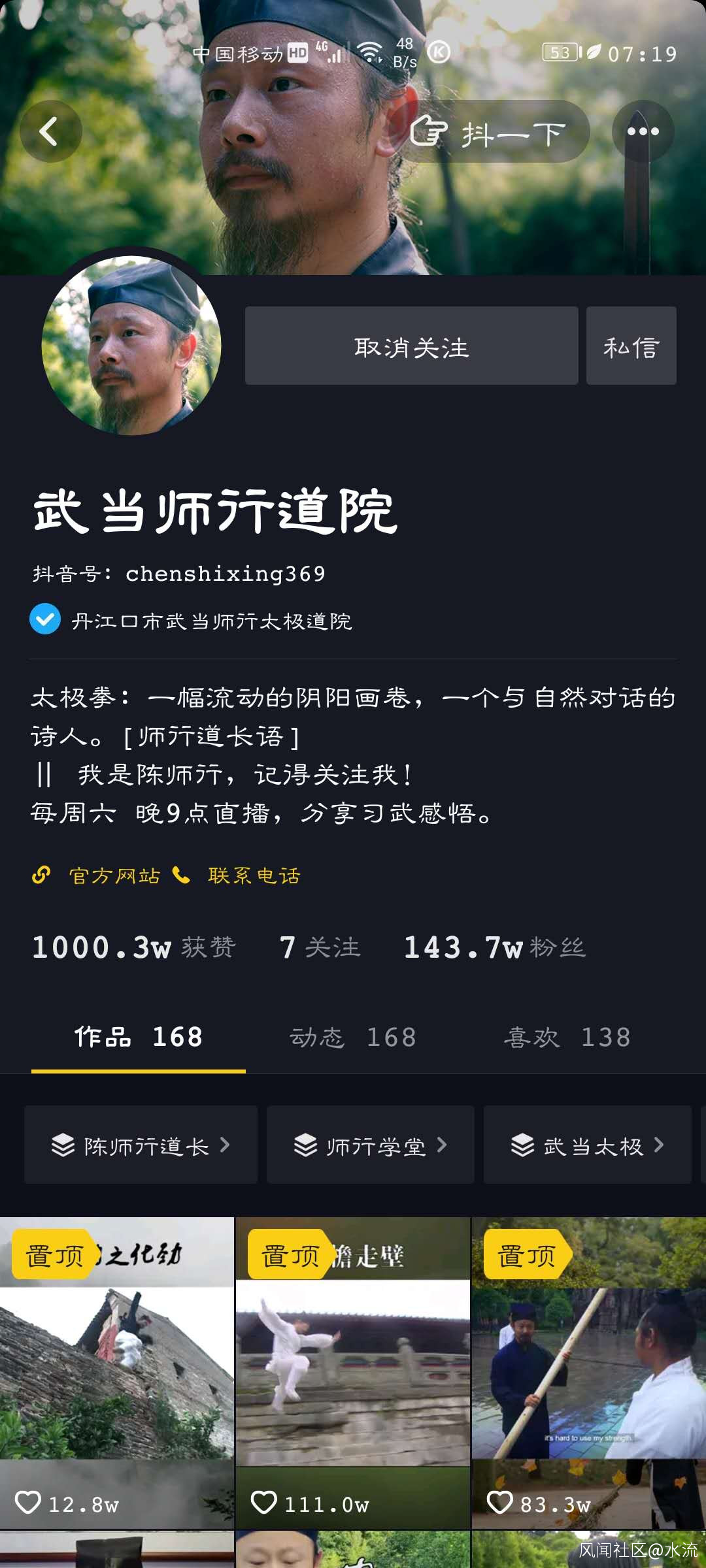 入駐抖音的武當陳師行道長,點贊千萬的up主。陳道長説,分享是功德。