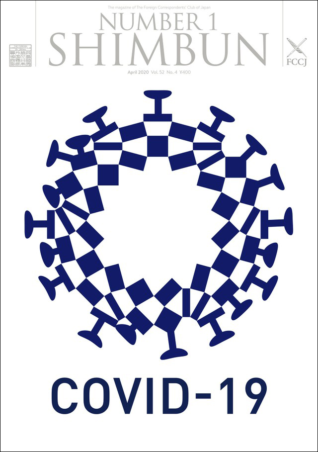 據日本共同社報道,駐日外國記者協會的月刊雜誌《NUMBER 1 SHIMBUN》4月號的封面,採取了將東京奧運會會徽與新冠病毒形象相融合的設計。