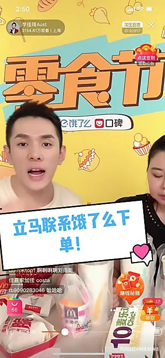 “本次聯合餓了麼吃播是一次全新的嘗試”,李佳琦表示,“希望能帶給大家新的購物體驗,同時也希望幫助到受到疫情打擊的實體餐飲店重建信心。”