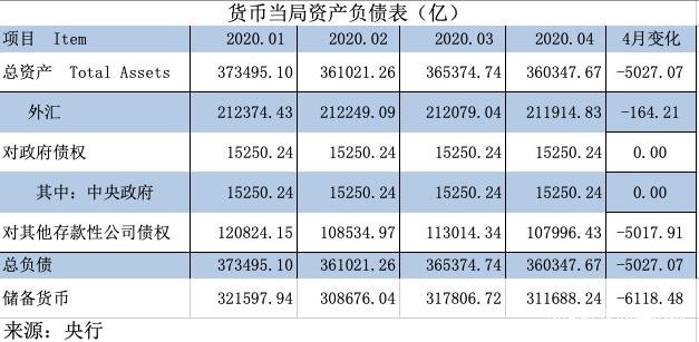 中國人民銀行最新公佈的資產負債表顯示,截至4月末,央行總資產為36萬億,相比上月收縮5027億。