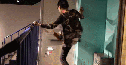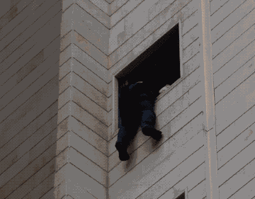 接着就可以從窗外,順着牆壁爬下樓啦,有點像玩室內攀巖的感覺。