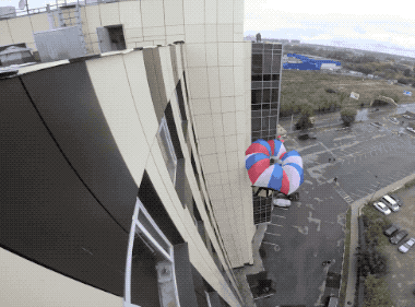 接着就像降落傘一樣慢慢飄下,看着好像還挺舒服。