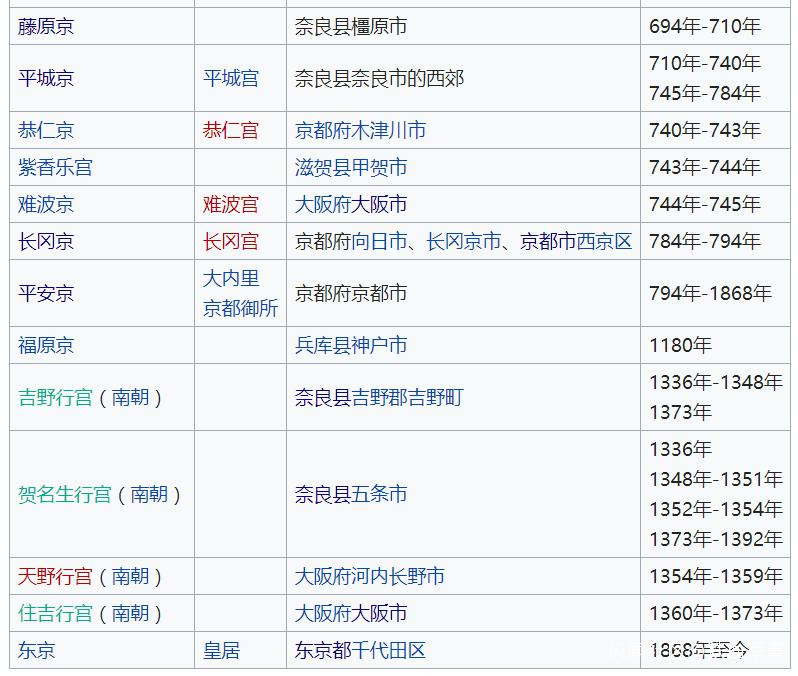 ▲ 自藤原京時代起,歷代皇居所在地。除了東京以外,其餘均是在關西地區