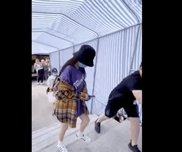 在通往樓梯的兩側,不少路人和狗仔躲在路邊,他們從棚佈下方伸出手機,甚至選擇以下蹲的方式仰拍,鏡頭所對的位置正好是楊冪的大腿處。