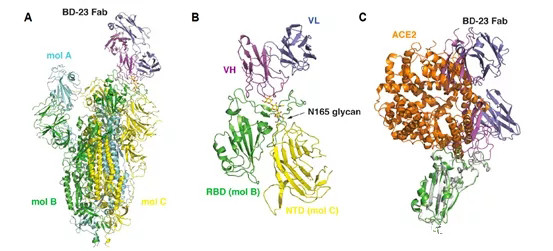 研究團隊的結構生物學家蘇曉東,肖俊宇及其課題組還利用冷凍電鏡(Cryo EM)得到新冠病毒Spike三聚體與中和抗體的高分辨率3.8Å三維結構密度圖。數據顯示,抗原上的中和抗體表位與ACE2的結合位點重合,從而揭示出中和作用的結構基礎。另外謝曉亮團隊還發現,利用抗體序列推算出的抗體與SARS病毒中和抗體在結構上的相似性篩選新冠病毒中和抗體,可大幅提高篩選效率。