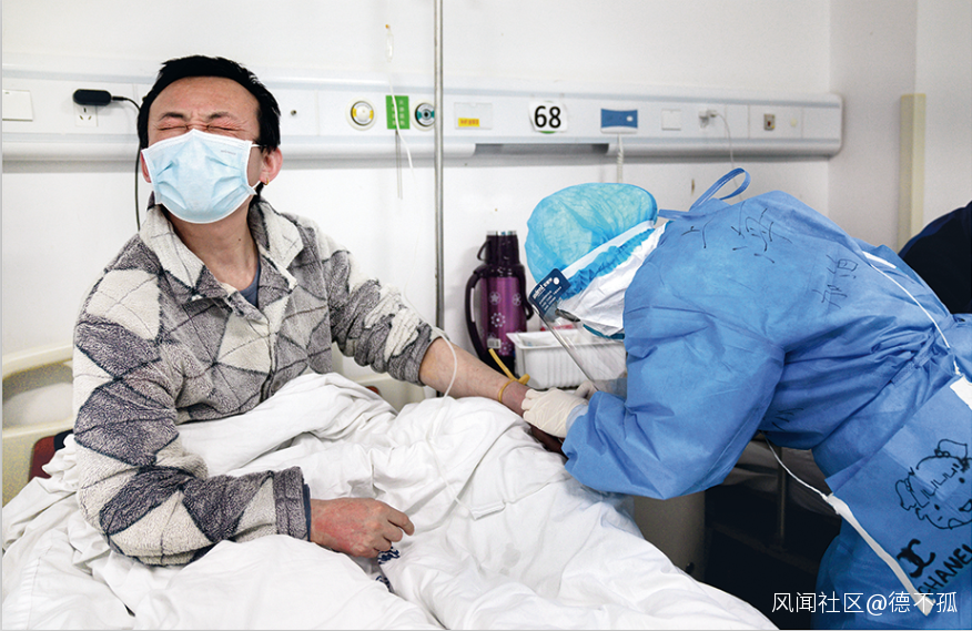 ▲2020年2月12日10:33,金銀潭醫院綜合樓一樓病區,上海護士正在為病人扎針。(董天曄 攝)