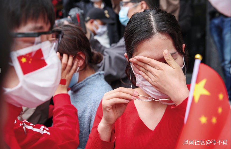 ▲2020年3月22日10:18,上海支援湖北醫療隊部分醫護人員啓程返滬。在簡短的歡送儀式上,兩地醫護人員紛紛落淚。(賴鑫琳 攝)