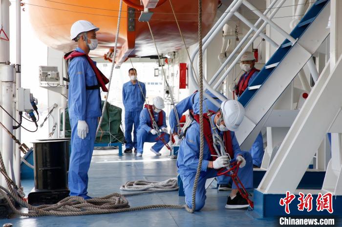 遠望6號船組織吊放救生艇應急演練。 倪棟樑 攝針對新海域航行、新設備參試、新船員多、疫情影響大等任務特點,遠望6號船精心開展關鍵備件測試、薄弱環節梳理、技術狀態驗證等準備工作。早在春節過後,絕大部分船員就主動在船隔離、堅守崗位,緊鑼密鼓投入任務準備之中。