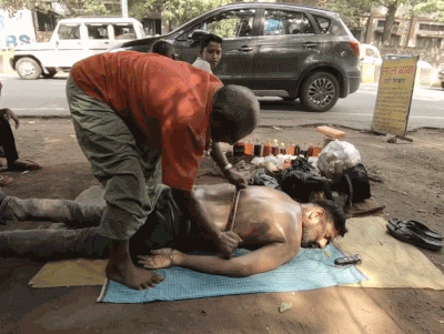 在印度刮痧被融入到街頭按摩體系中,與理髮、正骨、按摩結合,形成了獨特的保健一條龍服務。