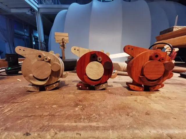 5月初,抖音上有個從事古建築研學的粉絲,給她送來了一隻用老木匠手藝親手製作的小豬佩奇,能像不倒翁一樣不停搖擺,毛毛喜歡得不得了。