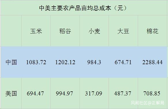 玉米、水稻、小麥、棉花等重要農產品,美國生產成本也很有優勢。