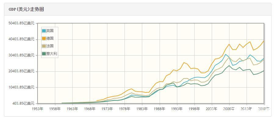 從經濟體量看,2018年,德國的GDP為3.95萬億美元,英國、法國只有德國的70%,意大利只有德國的一半。