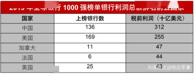 ▲ 2019年全球銀行1000強榜單銀行利潤總額排名前五強國家