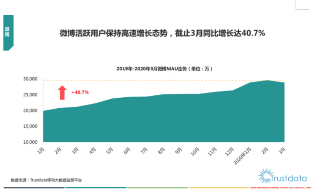 第三方機構極光的數據顯示,2020年春節假期,微博人均使用時長相比去年同期大漲53%。
