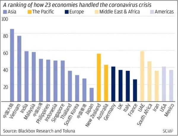 ▎5月6日,新加坡獨立民調機構Blackbox Research發佈了一項各個國家和地區的民眾對政府抗疫滿意度的調查報告。報告結果顯示,在全球23個經濟體中,中國大陸民眾對政府抗疫的滿意度最高,而西方國家民眾對政府的疫情應對普遍感到不滿