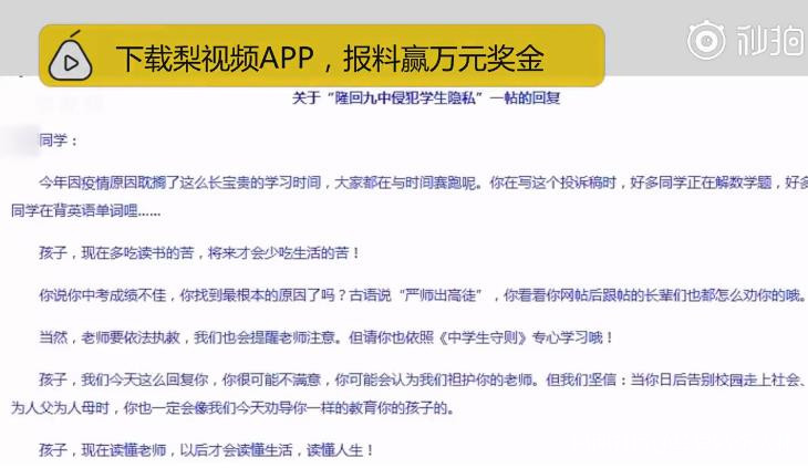 關於“隆回九中侵犯學生隱私”一帖的回覆